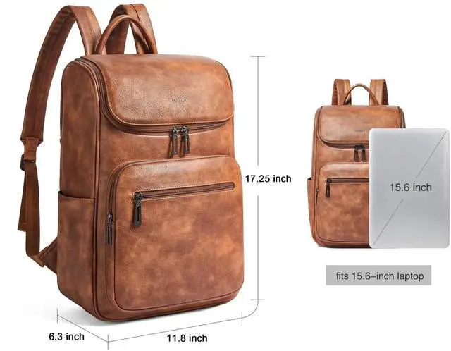 Leather Backpack :Leather laptop backpack measures 17.25*11.80*6.30 inch, 1.91 lbs.This backpack purse is made of high quality vegan leather, soft and lightweight,smooth zippers do not stick,and the shoulder straps and backpack joints are reinforced to make the casual daypack more durable.