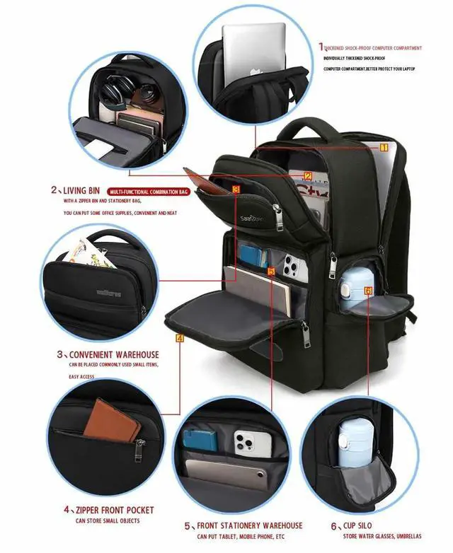 Our backpacks have garnered acclaim from customers worldwide, revered for their unparalleled quality and reliability. These versatile companions are designed for the business professional on the go, the intrepid traveler, and everyone in between. With ample space to accommodate a 15.6 -inch laptop, a 9.7 -inch tablet, an array of books, and clothing for short trips of 5-7 days, our backpacks are the epitome of adaptability. An added external charging port ensures that your devices are always powered, no matter the adventure. Crafted from high-quality Oxford cloth, our backpacks boast a breathable, pressure-reducing back design that is not only waterproof but also wear-resistant and shock-absorbent.