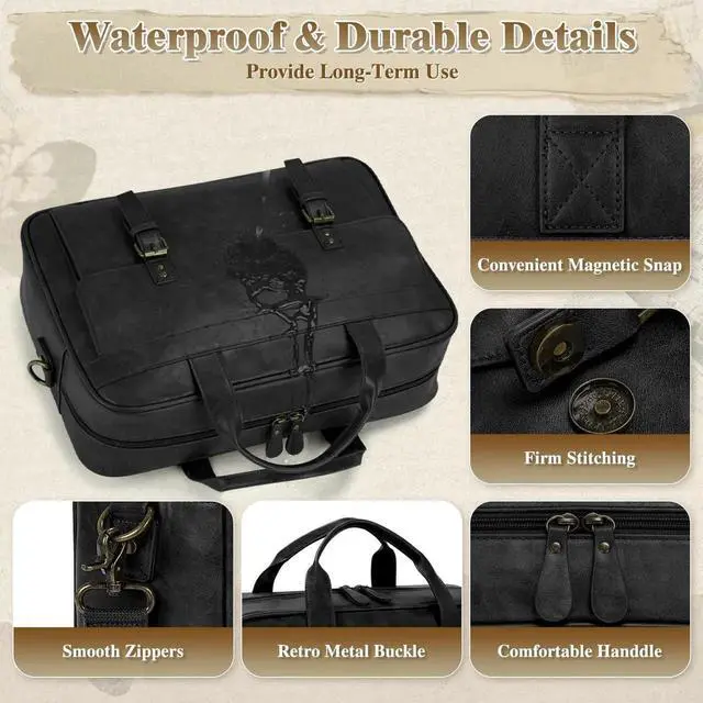 RAINSMORE Messenger Bag for Men 16 Inch Laptop Bag Vintage Leather Waterproof Laptop Briefcases Large Computer Bags Retro Satchel Shoulder Bag for WorkBusinessOfficeCollege