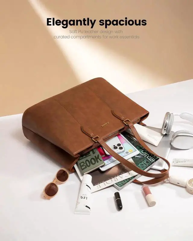 Lightweight & Comfortable Design This 2.2 lb laptop tote bag for women features super soft PU leather that won't dig into your shoulder. The smooth metal zipper and classic design make it perfect for both work and everyday use. No weird smells - ready to use right away