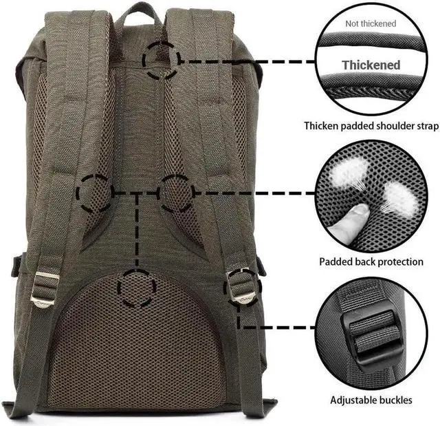 HIGH QUALITY & DURABLE MATERIAL. HIGH QUALITY Canvas makes the backpack soft and comfortable. The rucksack backpack is more high-end with the durable and eco-friendly canvavs. The contoured shoulder straps and back side comes with protective air mesh padded design, easy and comfortable to carry throughout all day. Adjustable padded shoulder straps (45-90cm), tighten and loosen easily.