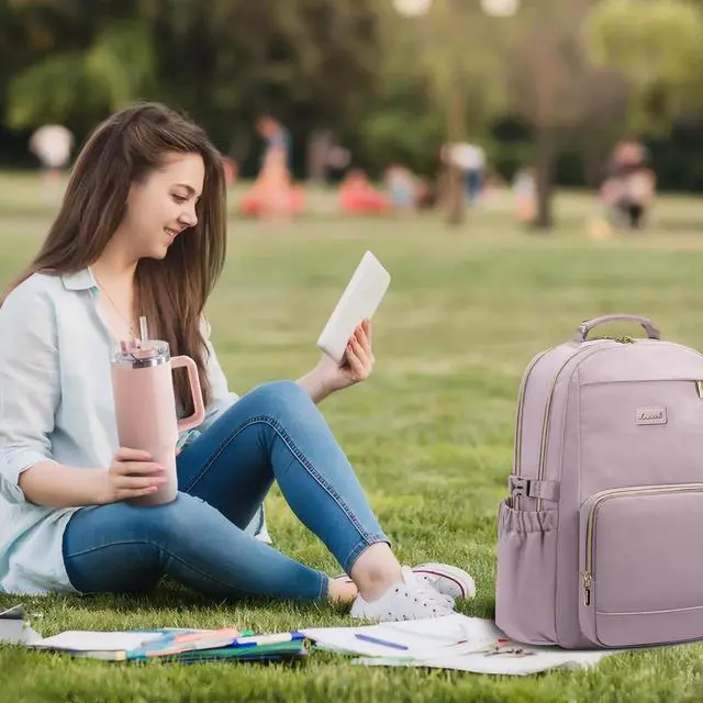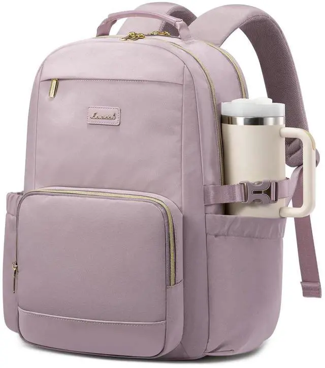 LOVEVOOK Laptop Backpack for Women with Pouch Pocket for Large Capacity Cup, 17 Inch Laptop Computer Bag Travel Backpack Purse, Waterproof Work Business Backpack College Teacher Bags, Grayish Purple