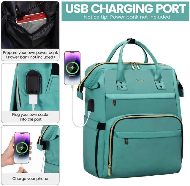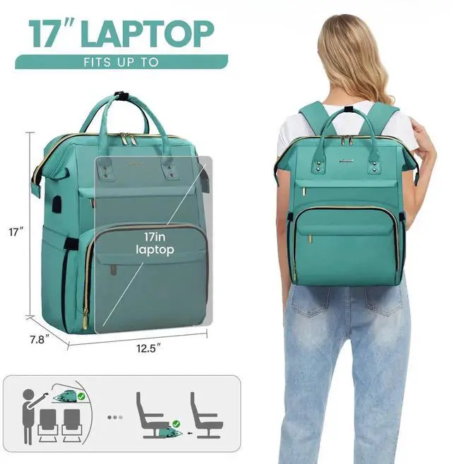 LOVEVOOK Laptop Backpack for Women, 17 Inch Professional Womens Travel Backpack Purse Computer Laptop Bag Nurse Teacher Backpack, Waterproof College Work Bags Carry on Back Pack with USB Port, Mint Green
