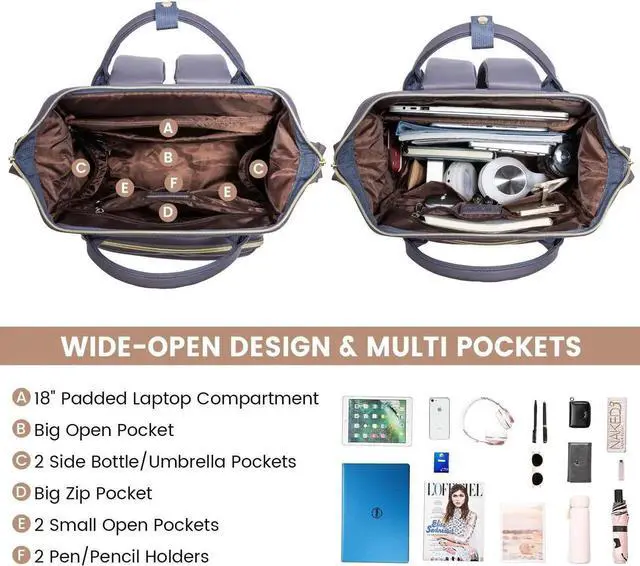 • Stylish Padded Computer Backpack Laptop Bag: Fit up to 18" laptops well, tablet slot fits 12.9" iPad. This womens backpack is padded on all sides and bottom. The dedicated laptop compartment with cushioned cotton sewn around, it maximizes physical protection of your electronic devices.