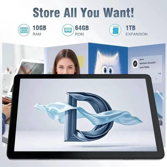 DigiLand Tablets, 10.1" Android Tablet with Octa-core Processor 10GB RAM+64GB ROM (Support Expand TF) 5MP Front/8MP Back Camera, 6000 mAh Battery, 2025 Android 14 WiFi Tablet (Gray)