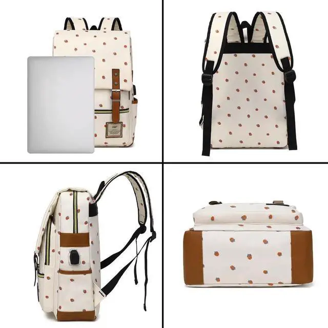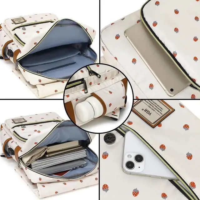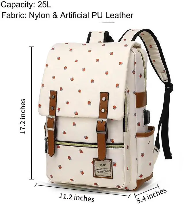 YGR Floral Laptop Backpack for Women, Female, Travel, Business, Outdoor Sports, Office, Work Khaki Strawberry