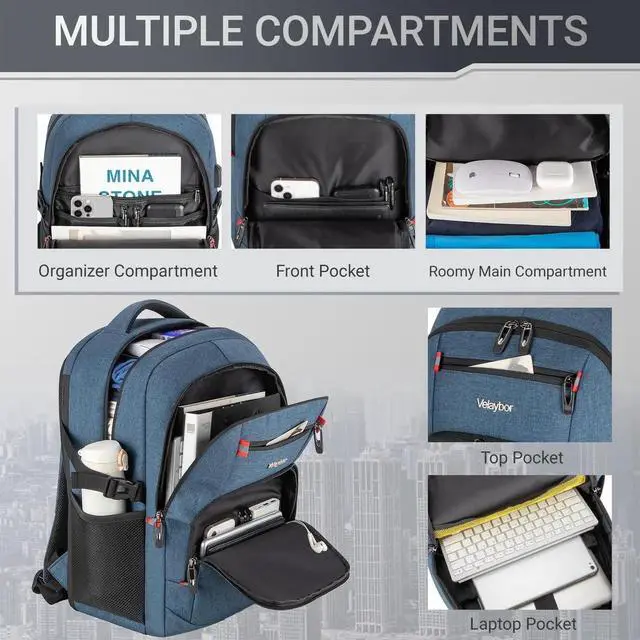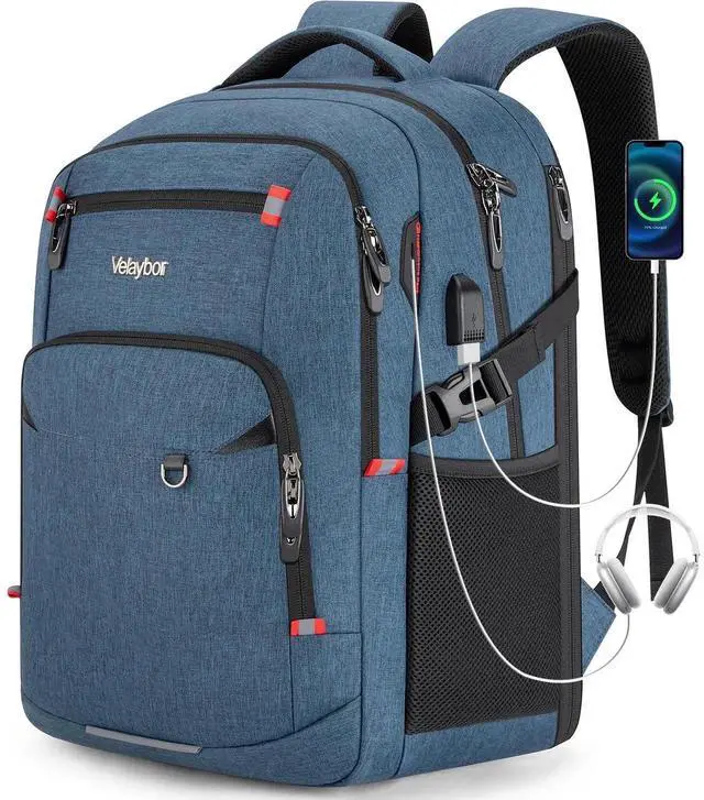 Velaybor 40L Expandable Laptop Backpack, Anti-thief Travel Backpack with USB Charging Port, Airline Approved Business Waterproof Carry on Luggage, Fits 15.6" Laptop for Men Women