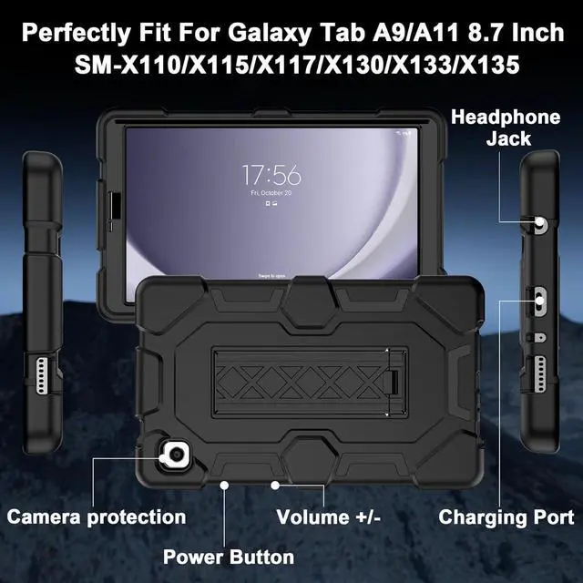 Inch 2026(Model: SM-X130/X133/X135). Please kindly check the model number SM-X*** at the Setting of the tablet before purchase. Exclusive Design The appearance design makes you associate with the hero of animation. Fans can imagine heroic battling villains in a fight for the fate of the world with this galaxy tab a11/a9 cases figure. Muscle mass design makes it more protective and easy to hold. Upgrade Kickstand galaxy tab a9/a11 case built-in sturdy kickstand extremely convenient and easy to push out and back in. Allows easy access to your favorite shows movies and games while on the go. Drop Proof Three Layer design combines a premium shockproof silicone outer layer with a hard PC cover; faultless a9/a11 tablet case and withstands accidental drop bump and shock damage. Ideal Tablet AccessoriesFlexible to use your tab a9/a11 during work studying or journey great ideal students teachers or engineers. It is the best choices for husband boyfriend family and friends.