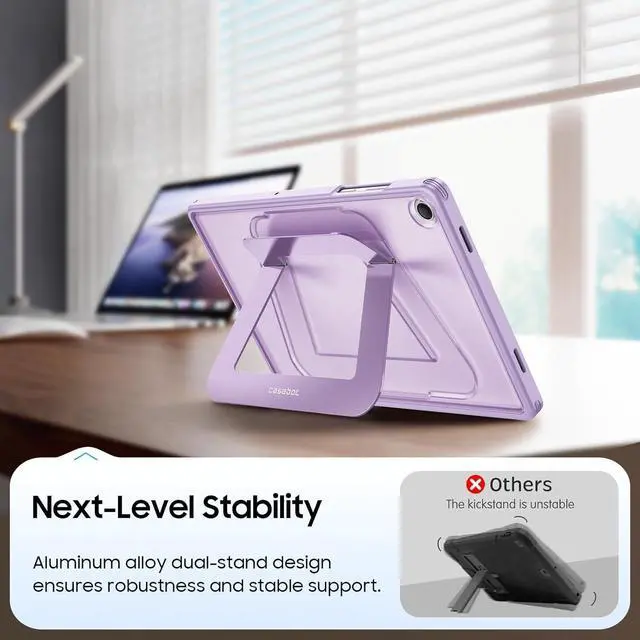 Stand Every Angle: A dual-axis aluminum stand adapts instantly: low tilt for notes tall landscape for videos and calls stable portrait for browsing. Engineered for comfortable viewing at any angleTough