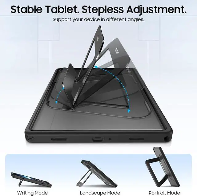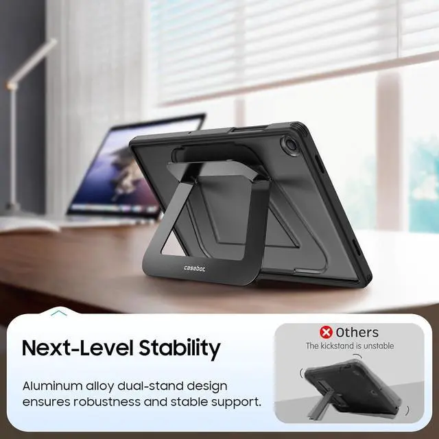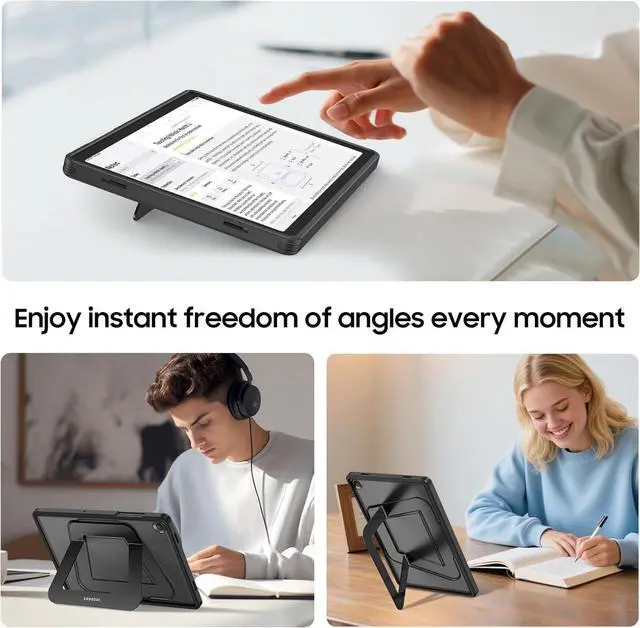 Stand Every Angle: A dual-axis aluminum stand adapts instantly: low tilt for notes tall landscape for videos and calls stable portrait for browsing. Engineered for comfortable viewing at any angleTough