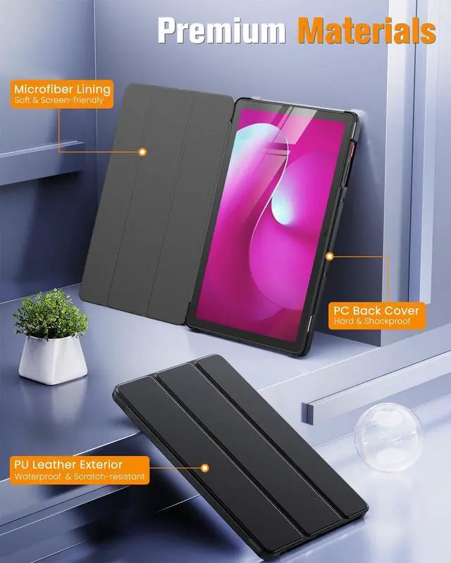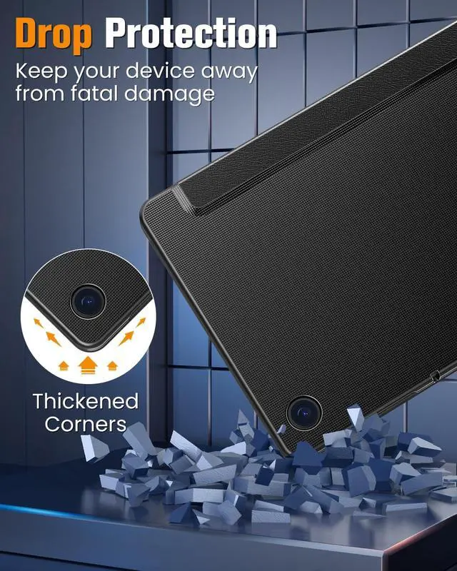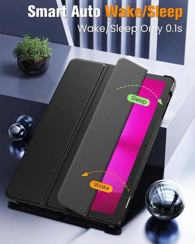 Auto Wake/Sleep: Revvl tab 2 case with built-in magnets automatically wakes or puts your device to sleep when the lid is opened and closed to reduce the power loss and prolong the battery life.