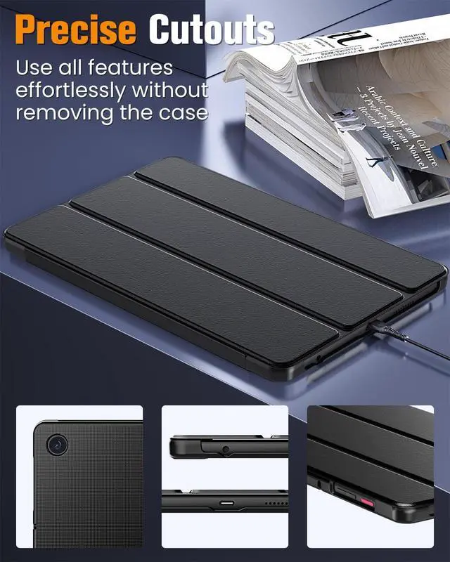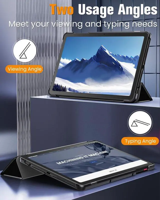 )Stand Angles for Hands-Free: T-mobile revvl tab 2 case built-in strong magnetic stripproviding users with stable reliable and comfortable viewing typing and writing angles.