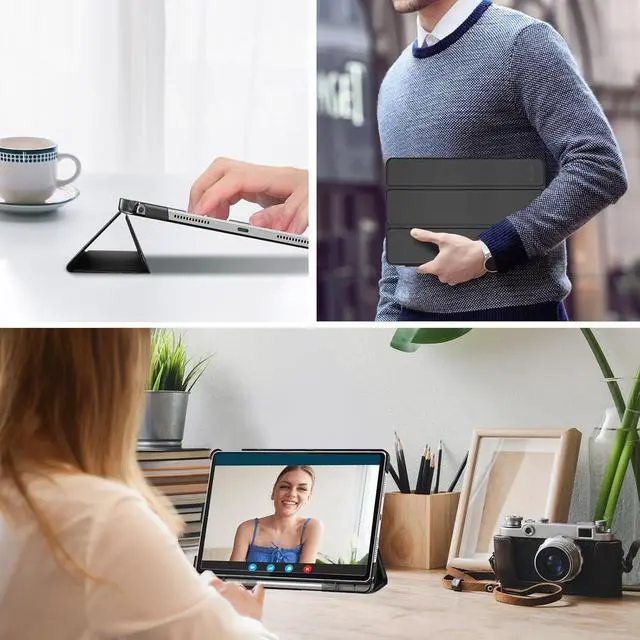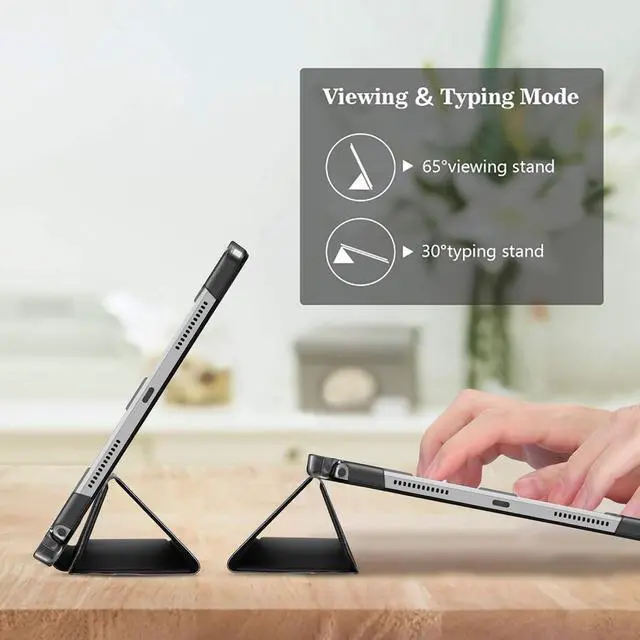 Stand Case: Slim Magnetic Front Cover can be folded into a triangle to prop up the tablet in landscape for viewing or typingSlim