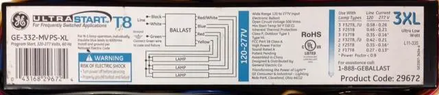 GE 29672 ? GE-332-MVPS-XL LFL UltraStart Electronic Program / Rapid Start Ballast A new generation of ultra-efficient Programmed Start ballasts (> 90% efficiency)