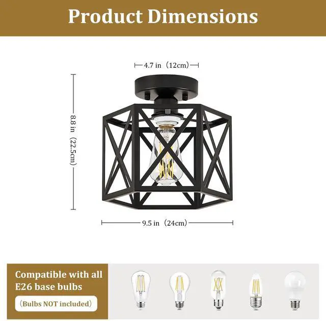 Easy Installation:This vintage Semi Flush Mount ceiling light is simple to install, requiring no complicated setup process, and bulb replacement is a breeze. It comes with all necessary mounting hardware and an installation manual for quick setup