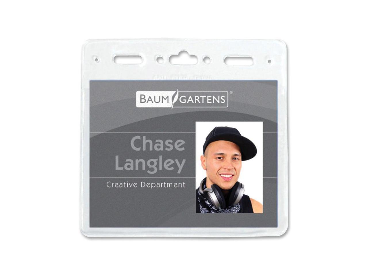 Baumgartens Vinyl Badge Holder Punched Horz 4"x3" 50/PK CL 67830