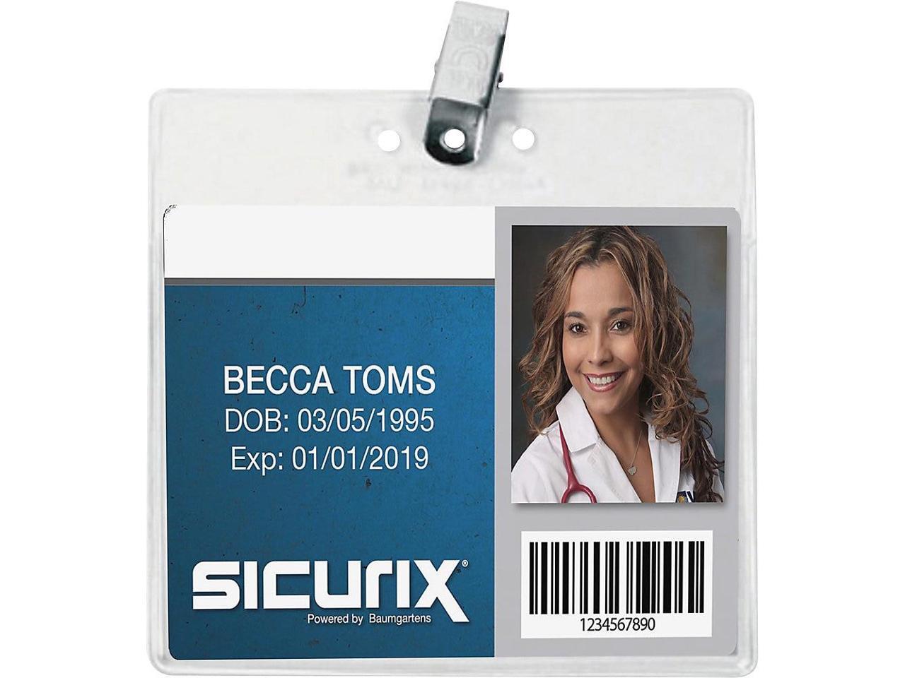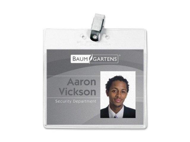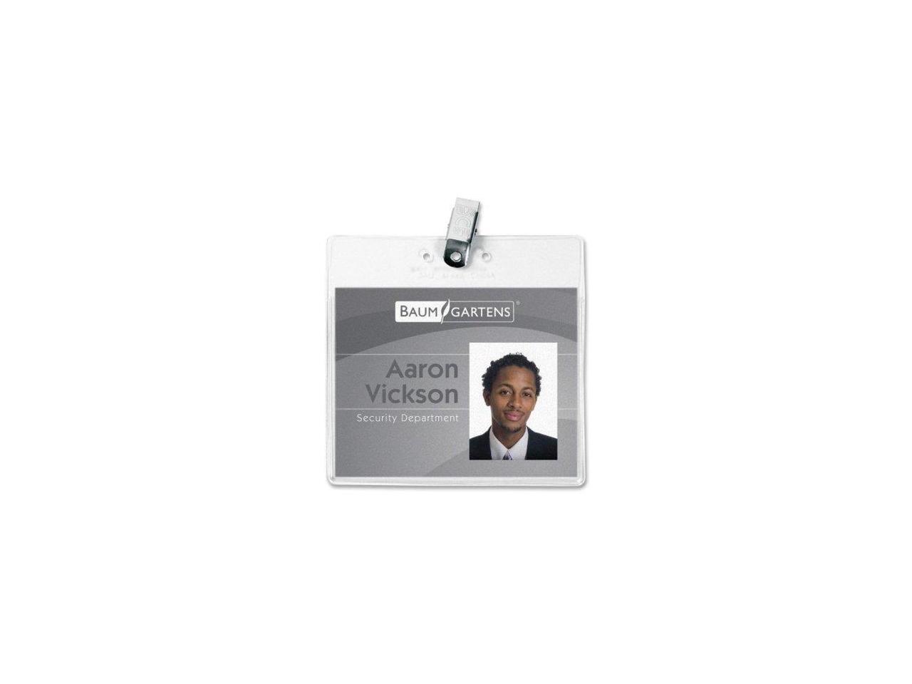 Baumgartens Vinyl Badge Holder,Clip,Horizontal,4"x3",50/PK, CL 67840