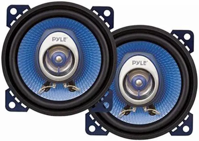Pyle Model : PL42BL4'' 180 Watt 2-Way Speakers4'' 180 Watt Two-Way Speakers One Pair 4'' Two-way Speaker Systems Power Handling: 90 Watts Rms / 180 Watts Max Non-fatiguing Butyl Rubber Surround 3/4'' High Temperature ASV Voice Coil Standard 4'' Size Fits OEM Locations Blue Poly Injection Cone 20 oz Magnet Structure 1/2'' Neodymium Film Dome Tweeter Impedance: 4 Ohm Sensitivity: 88 dB Frequency Response: 110Hz - 20Khz Mounting Depth: 1.95'' Pyle's Blue Label series speakers don't just sound great - they look great, too. Feast your eyes upon the azure curves of Pyle's Blue Label series and you'll agree. They're great replacements for your vehicle's factory speakers - you'll hear the difference immediately. Included in this package is a pair of round 4' two-way 180 watt speakers - carrying both the high and low end for a fuller range sound. The non-fatiguing butyl rubber surround keeps your speakers secure as well as extending the life of the product. A ' high-temperature ASV voice coil provides the richest sound, ensuring low distortion and providing an open sound stage. The blue poly injection cone looks great and allows your music to resonate with full power. The 20 oz. magnet structure and ' neodymium film dome tweeter are what power these speakers and allow for a 110 Hz - 20 kHz frequency response. Trust Pyle to provide quality sound at a competitive price.