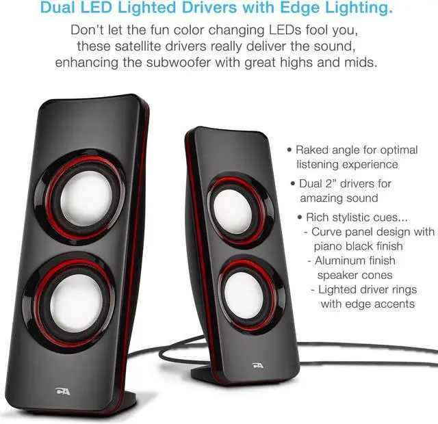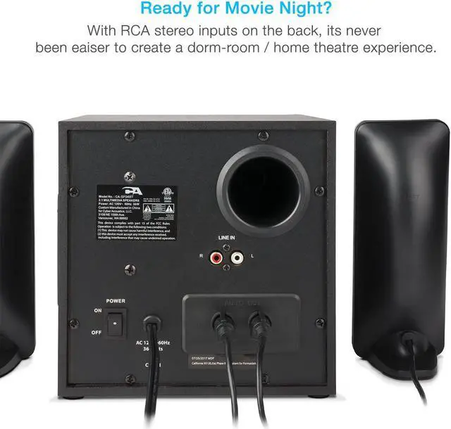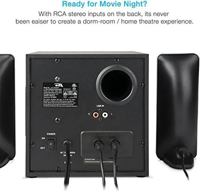 With easy set up and full 1 year warranty coverage by Cyber Acoustics, this speaker system is an awesome answer to the fun music and effects you have been looking for. AC power 110V only.