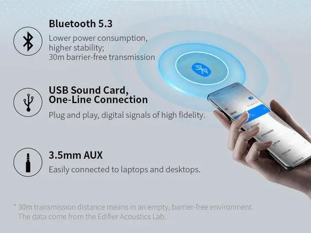 Thanks to Edifier's expertise of 26 years, the full-range unit with a golden ratio of 2.5 inches is tailored for small speakers. After repeated tuning by acoustic engineers, the sound is pure, full and clear. The specially tuned esports sound effects present you an immersive gaming experience.