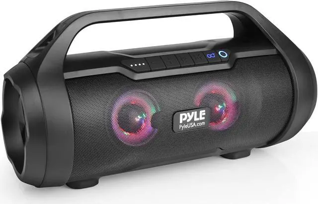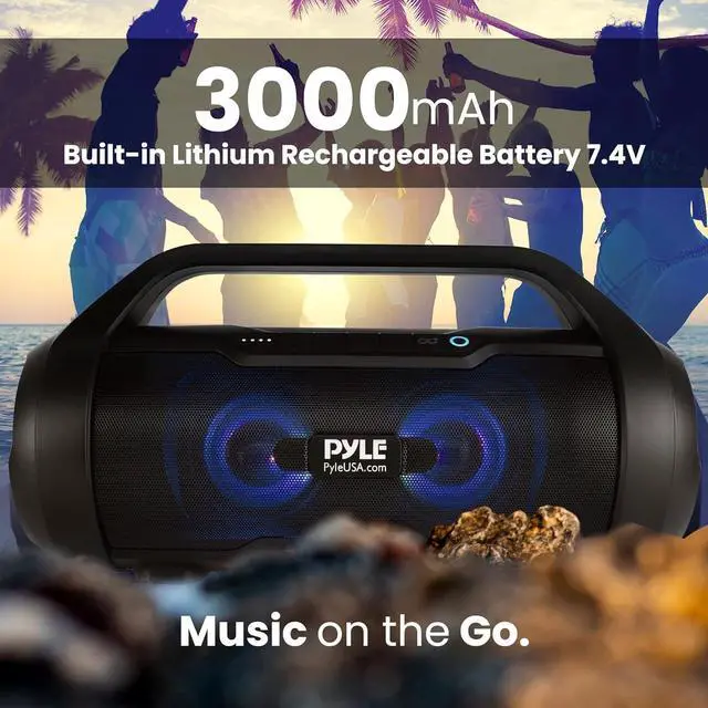 RECHARGEABLE BATTERY: Pyle boombox bluetooth speaker is great for karaoke, stage performances, & crowd control. It is equipped w/ a built-in 7. 4V Li-iOn rechargeable battery w/ 4-6 hours charge time and carry handle so you can take it anywhere you go