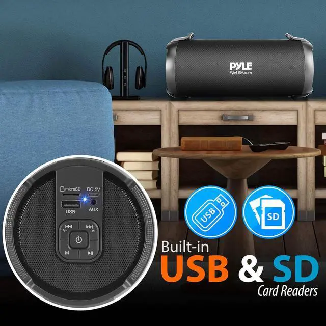 RECHARGEABLE BATTERY: Pyle boombox bluetooth speaker has a rugged & durable construction housing design and is equipped w/ a built-in 3. 7V Li-iOn rechargeable battery w/ up to 2 plus hours life & detachable carry strap so you can take it anywhere you go