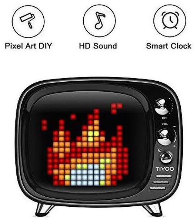 WHY SHOULD YOU CHOOSE TIVOO PIXEL Pixel Art DIY BLUETOOTH SPEAKER?> Retro and funky TV appearance, super strong function and classic pixel art, first-class sound quality, powerful bass. Tivoo is a great product and gift makes you have super awesome experience. DO YOU MISS THE OLD STYLE PIXEL ART? LOOK HERE! 16*16 pixel screen satisfied your creation. We got a pixel art community in our app, all of the people who are into pixel art having fun in here. We make images even animation and we show to others. HD SOUND QUALITY AND POWERFUL BASS! Top-level configuration and unique architecture brings you the best sound quality. Under 75 signal-to-noise ratio, powerful bass. V5.0 blutooth, support aux & bluetooth & sd card. STOP BOTHERING FOR CHOOSING A GIFT. THIS IS YOUR BEST CHOICE. Are you still considering to buy a normal bluetooth speaker as a gift? Too boring! Tivoo bluestooth speaker, more than a speaker. And you will know it. A MUST-TO-BUY! JUST ADD TO CART NOW!!!