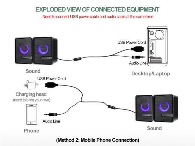 - Plug and Play: The computer speakers only needs to be plugged into the USB port of the power supply, and then connect the 3.5mm audio cable to the headphone jack of the computer or smartphone.There is also a volume knob on the audio line, you can control the volume at will.