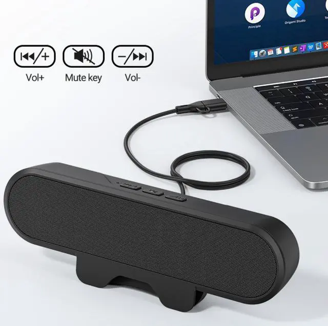 Wider CompatibilityOur Pc speaker for desktop with the latest built-in decoder chip are compatible with Laptops,Pc and some android Phones with type-C port, as long as they have the latest audio drivers installed for the sound card. USB C to USB Adapter in the box will make the speaker work well with Type-C port only devices like Android phones,Macbook Air,Pro, or other devices(not icnluding iPhone 15). More Compatible than other speakers with only USB cable