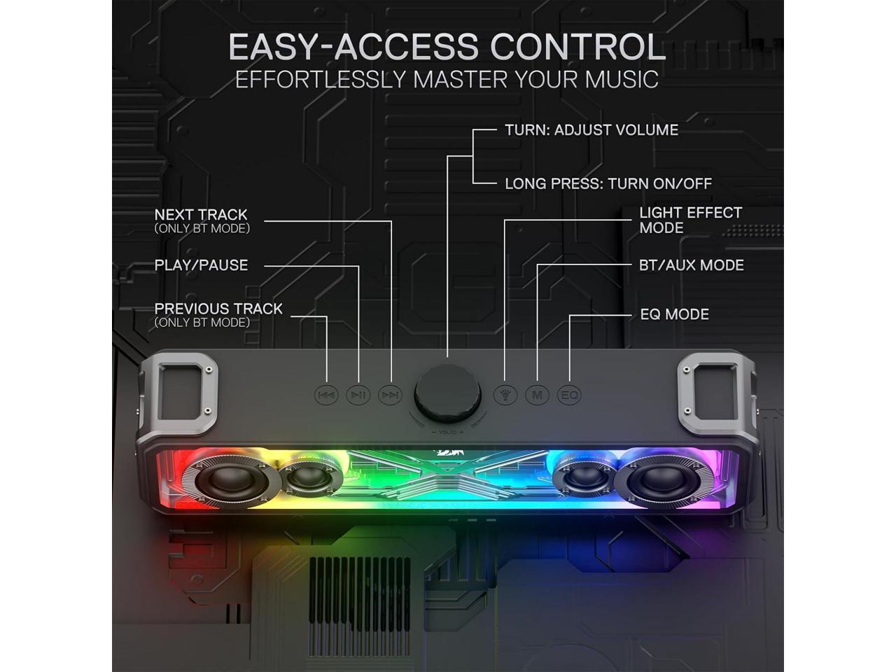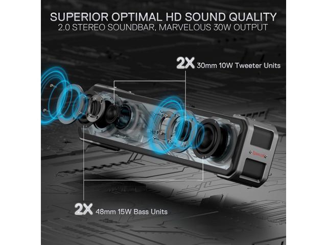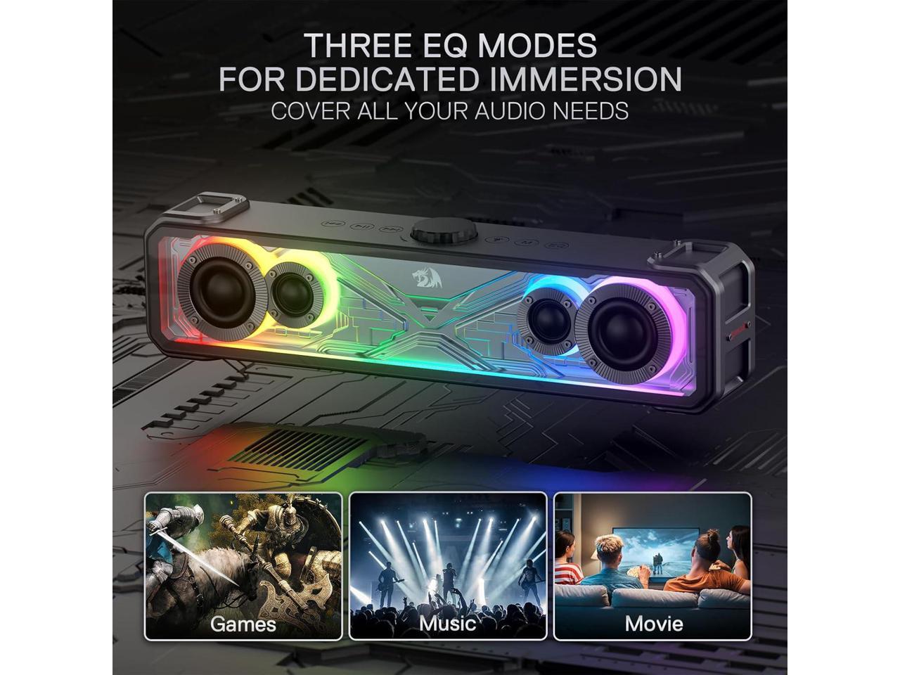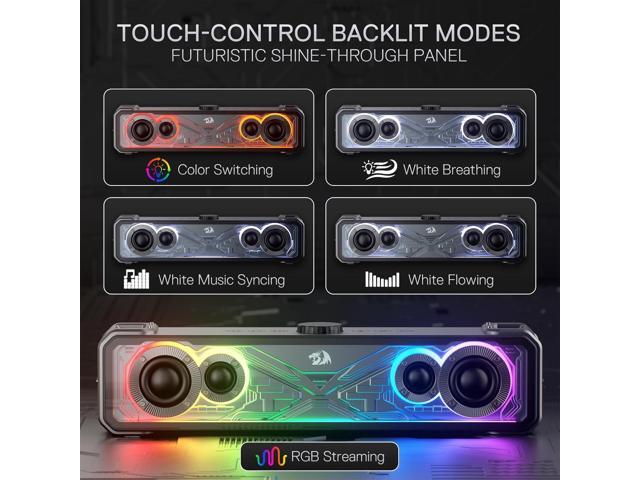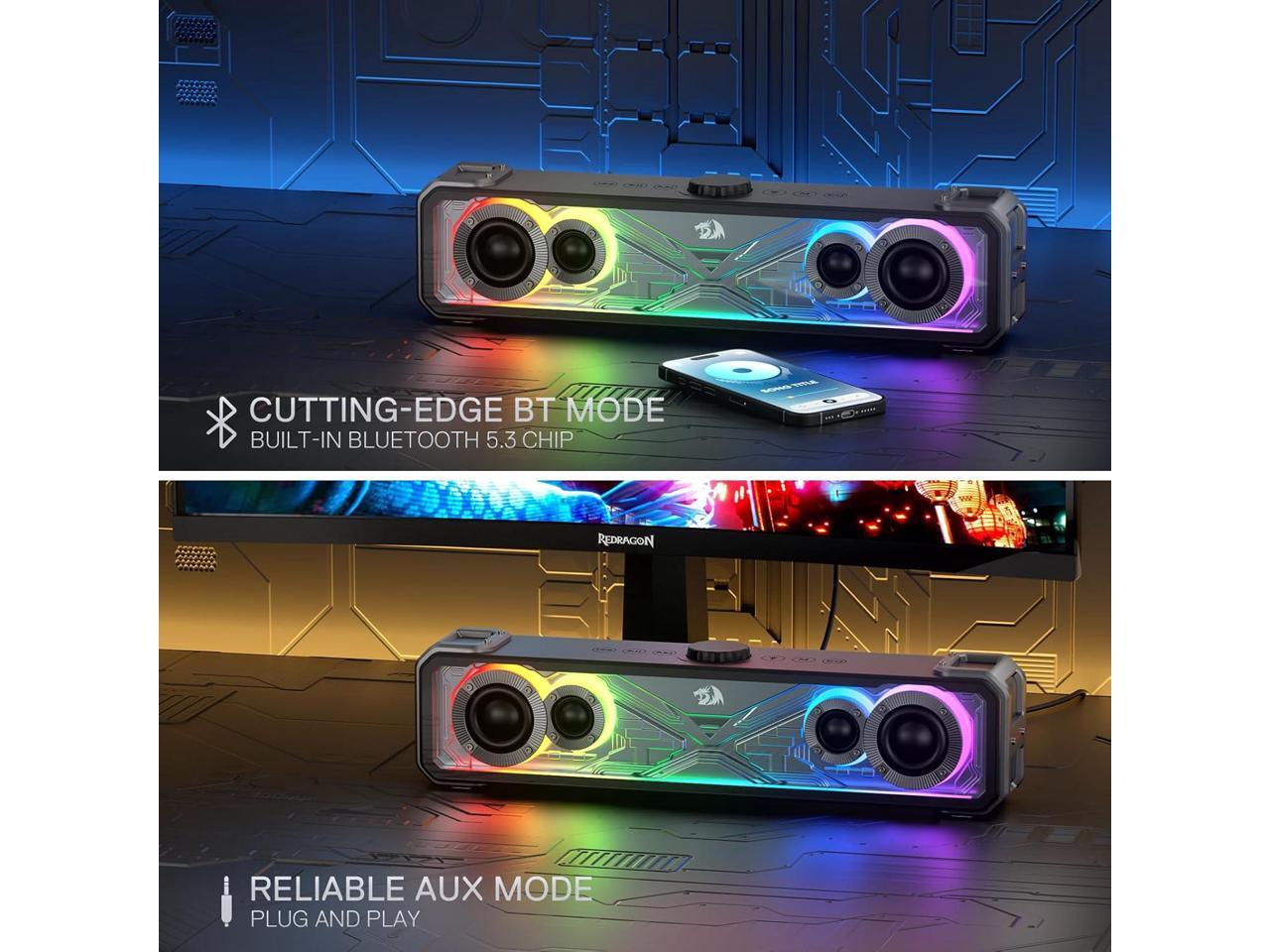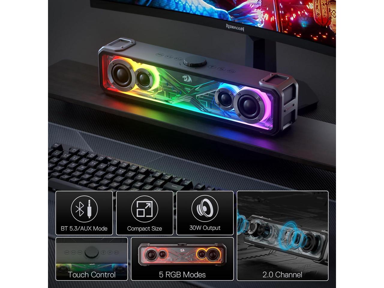 Redragon GS817 RGB Desktop Soundbar, 2.0 Channel Stereo Speakers for Desktop w/Massive 30W Max Power, Touch-Control, Bluetooth 5.3 & 3.5mm AUX Inputs, Black