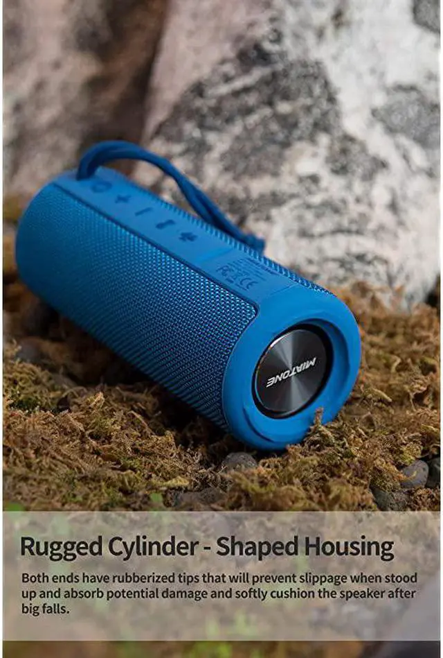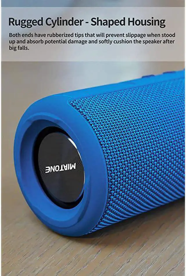 *****Rugged Cylinder - Shaped HousingMesh fabric provides enough grip to run with this portable speaker in your hands without worry about losing a grip. Both ends have rubberized tips that will prevent slippage when stood up and absorb potential damage and softly cushion the speaker after big falls. So this speaker is