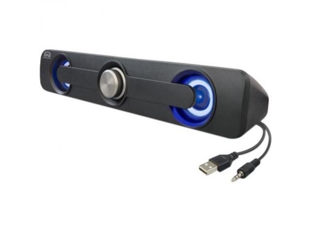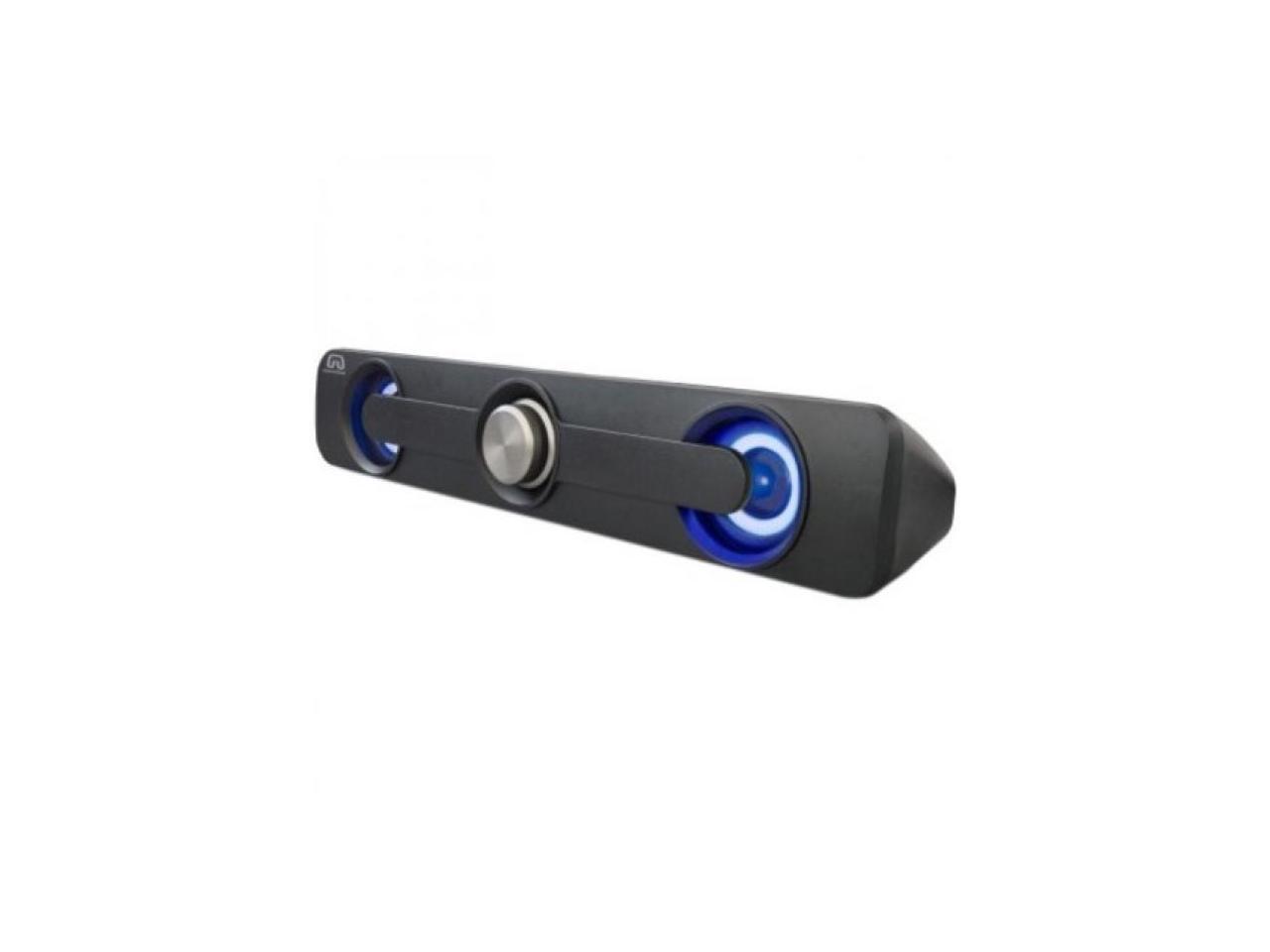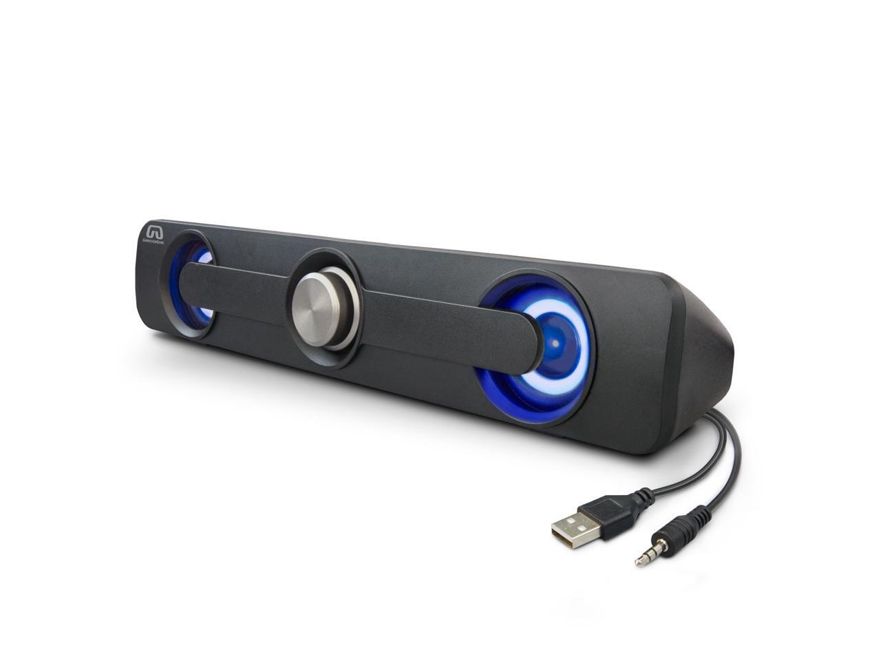 Desktop Compact USB Powered Wired Multimedia Mini Stereo Sound Bar 3.5mm Audio Jack Blue LED 2.5 Watts