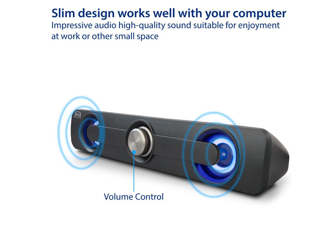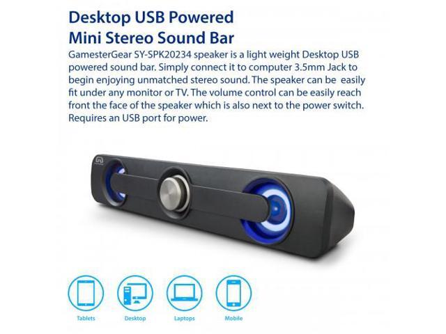 - PC soundbar is with dual full-range 2.5W speakers. When it comes to movies, favorite soundtracks and more, these desktop speakers help ensure convenient crystal-clear sound.