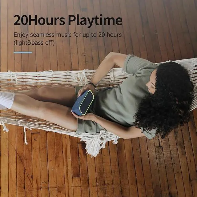 Nonstop Music: Got outdoor plans? This lightweight, portable speaker keeps the music going all day and night! With a powerful battery offering up to 20 hours of continuous playtime, its your go-to companion for camping, hikes, beach days, or late-night gatherings. Never miss a beatwherever you go!