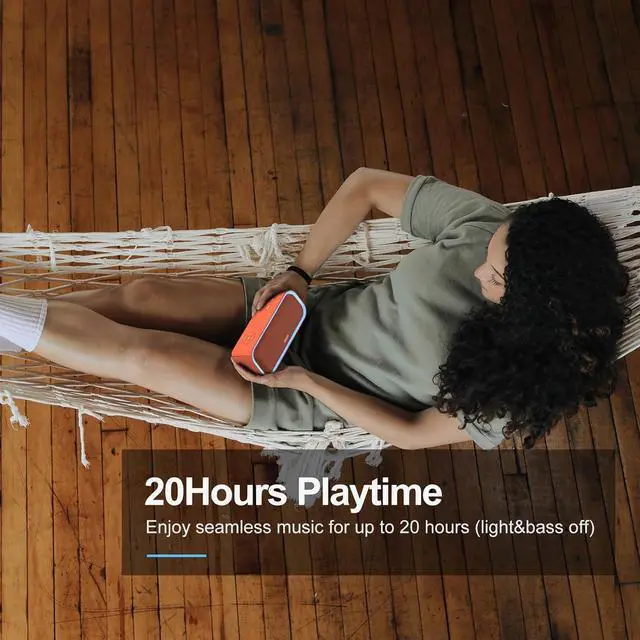 Nonstop Music: Got outdoor plans? This lightweight, portable speaker keeps the music going all day and night! With a powerful battery offering up to 20 hours of continuous playtime, its your go-to companion for camping, hikes, beach days, or late-night gatherings. Never miss a beatwherever you go!