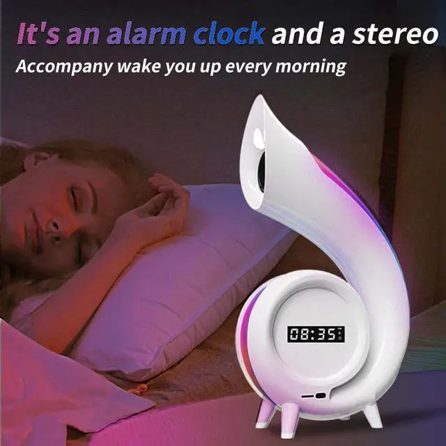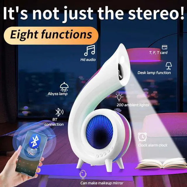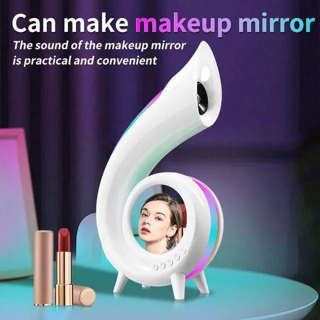 This is a set of BLE audio, atmosphere light, table lamp, clock, alarm clock, makeup mirror in a multi-functional audio, both practical and beautiful, to maximize the convenience of your life.