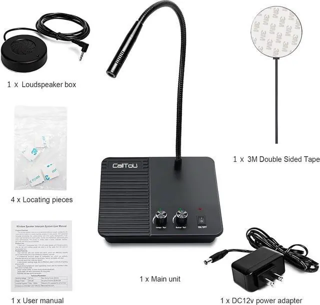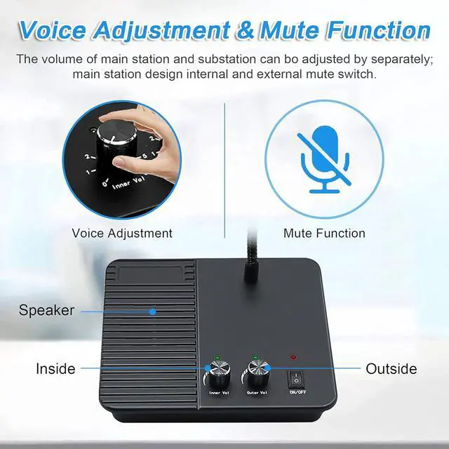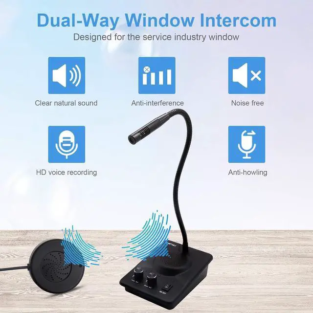 Window Speaker Intercom System Intercoms 2 Way Anti-Interference Intercommunication Microphone Counter Intercoms for Business, Bank, Office, Hospital, Store, Station, School, Counter, Home
