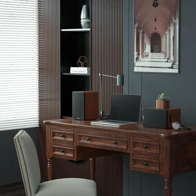 Classic Design and Natural Appearance: The wood grain look of bookshelf speakers adds a natural and warm appearance to the speakers that blends well with a variety of home decoration styles. The classic and timeless design of wooden bookshelf speakers is a popular choice for many people and adds a touch of sophistication to any room.