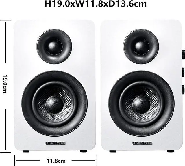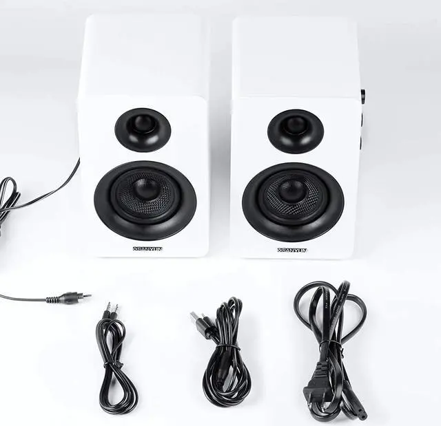 Sanyun SW208 3" Active Bluetooth 5.0 Bookshelf Speakers 60W Carbon Fiber Speaker Unit - Built-in 24bit DAC - Dynamic 3D Surround Sound 2.0 Computer PC Monitor Gaming Speakers (Pair, White)