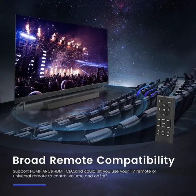 Broad Remote Compatibility- Support HDMI-ARC&HDMI-CEC, and could let you use your TV remote to control volume and on/off. No need two Remote. Enjoy wireless streaming music through Bluetooth 5.0; AUX, Coaxial, USB, and Optical inputs, could work with almost all your devices.