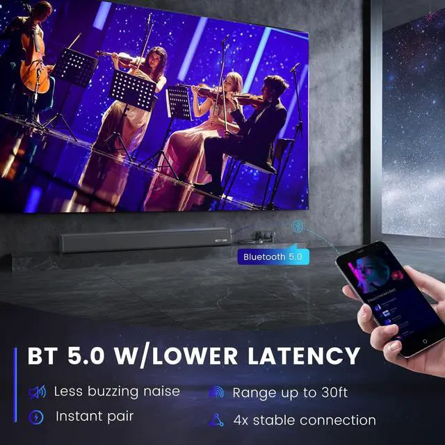 Dialogue Enhancement Technology- BESTISAN SE05P home audio sound bars with Dialogue enhancement Technology can make every word and detail stand out. With less than 1% total harmonic distortion provding the sound reproduction better than most products on the market to let you hear every music notes beating on each music performance and not miss nothing on each dialogue.