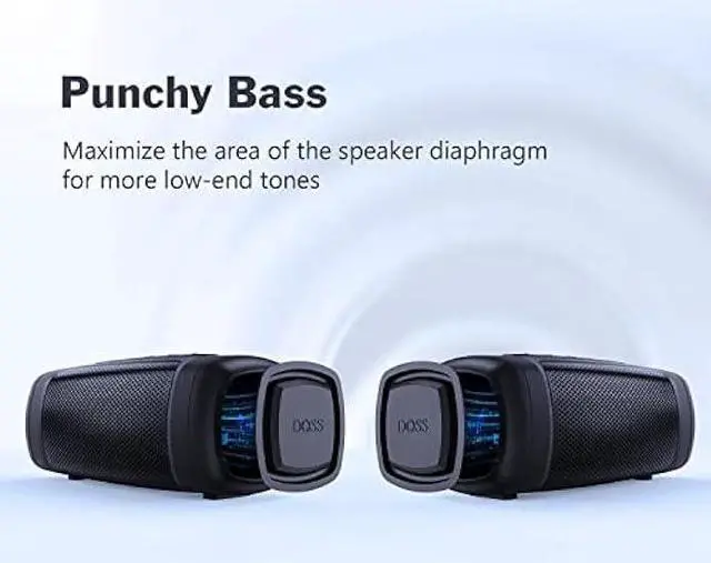 IPX6 Waterproof: The Doss waterproof Bluetooth speaker against water spray and rain via the rugged and durable material (Not Submerged in Water). With its compact size and lightweight, it's the ideal outdoor speaker for beaches, poolside parties, camping, or anywhere you go.