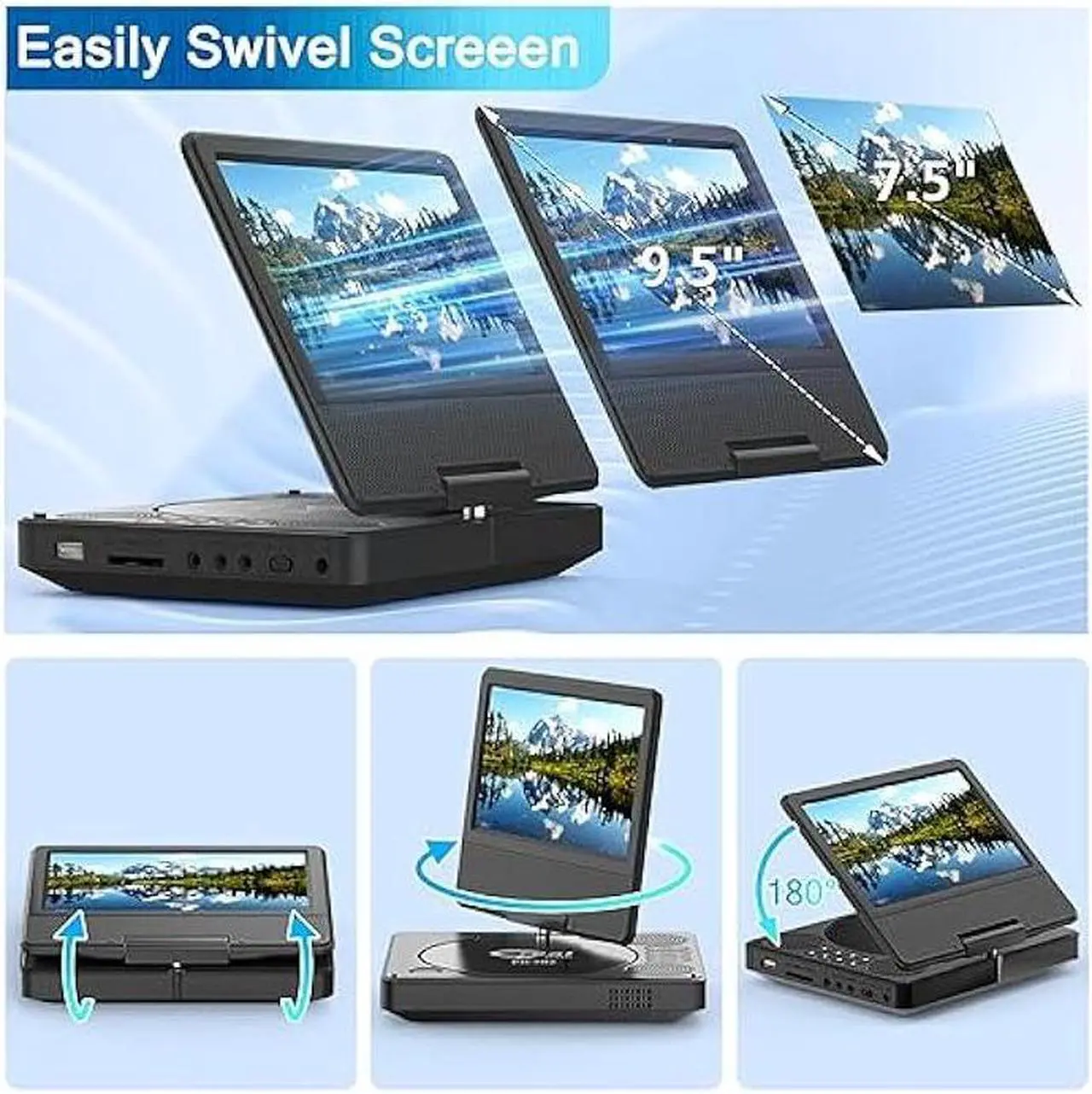 Excellent visual experience 7.5 -inch PJGCWB portable DVD player has a 270° rotating and 180° flipping eye protection screen, the resolution can reach 800*480, the body is compact and easy to carry, it is very suitable to put on the car seat, giving you an excellent visual experience.