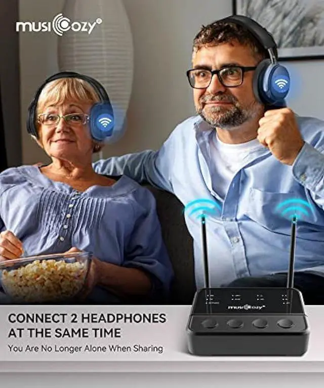 Wide CompatibilityCompatible with most of TV's on the market, our MUSICOZY Bluetooth transmitter receiver supports optical / AUX and RCA audio output. The YK-69 features a dual-link function that allows two Bluetooth headphones/speakers to be connected at the same time. Audio will play through both devices simultaneously. Enjoy late-night Netflix sessions or TV shows with your partner, allowing you to enjoy high-quality music wirelessly at your own volume without disturbing others.