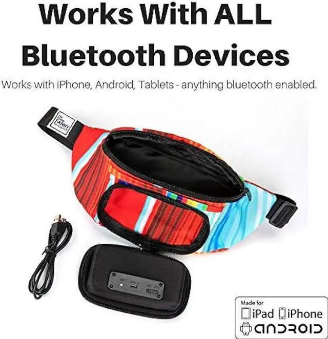 Tablet: Cute fannypack + speakers combine to deliver powerful, full-bodied sound that lasts for 4+ hours. Works with iPhone and Android devices seamlessly.