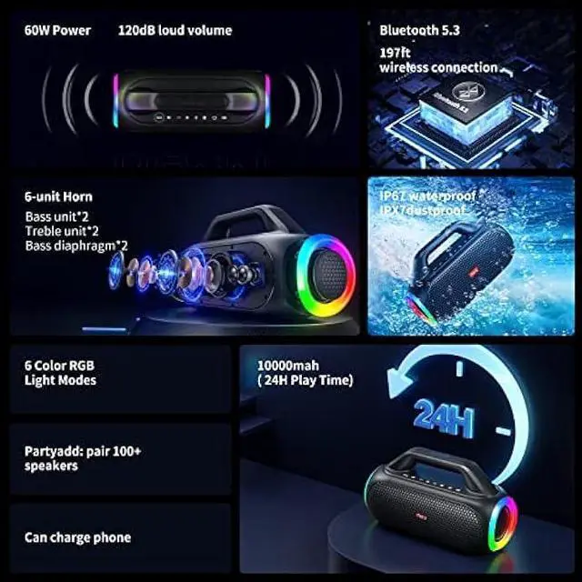 16M Dynamic Led lights - A great portable speaker supplies music banquet, colorful lights brings cordial and friendly atmosphere, light up speakers bring more surprise to you