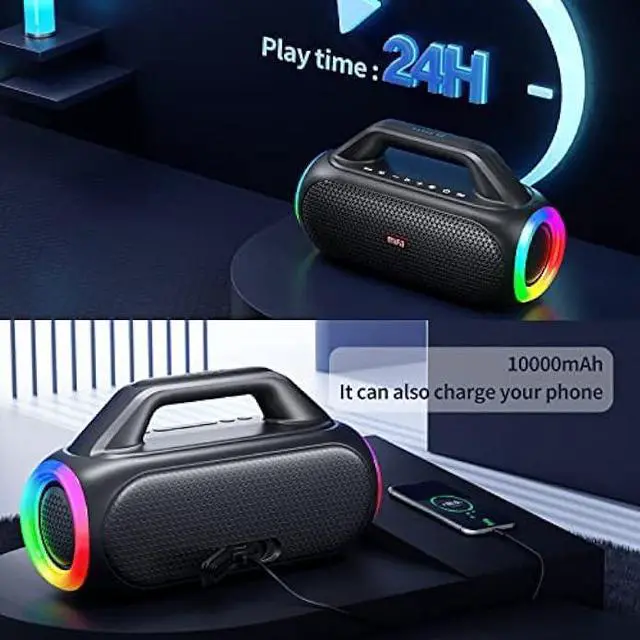 Loud Sound with Deep Bass - MIFA WildBox wireless speakers with bluetooth delivers 60w output with 2×20W RMS Woofer and 2×10W RMS Tweeter, extra bass button help you to enhance bass effect