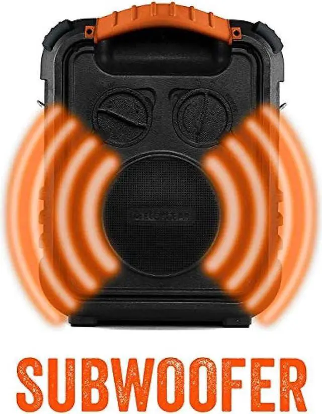 100% Waterproof and dustproof - meets IP67 international standards, no worries with rain, dirt or snow; Drop it in your pool, lake or ocean - no worries, it floats; Audio sources include Bluetooth, AM or FM or wired AUX-IN connection; External microphone jack for PA or Karaoke function (mic sold separately)