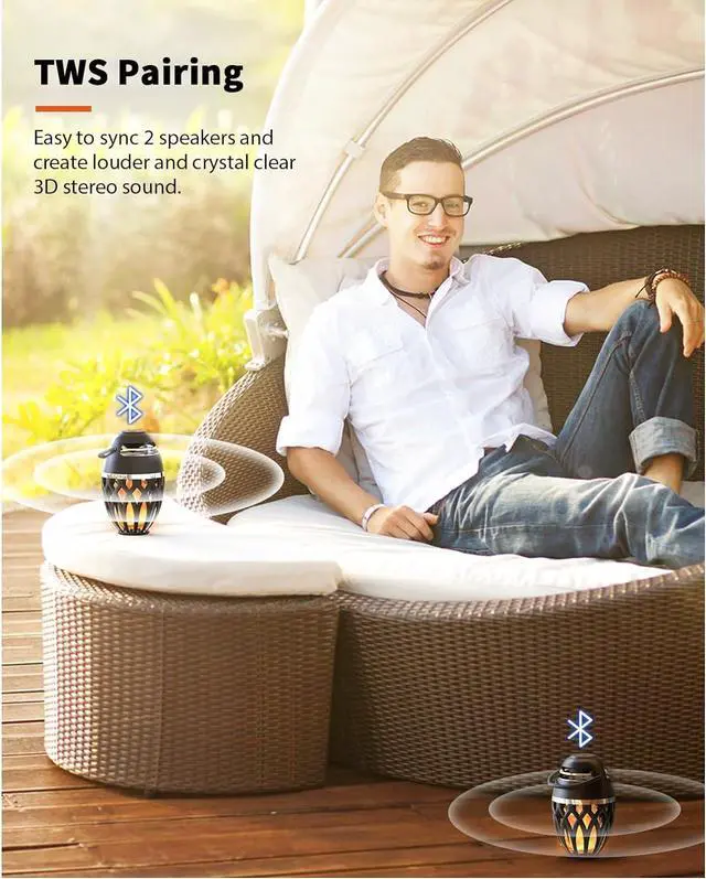 Best Gift for Men Women & 100% Warranty This mutifunctional wireless speaker is not only as a bluetooth speaker, also as patio speakers, torch light spearker, LED night light, decoration lantern and atmosphere lamp. Realistic flame effect bring a flickering and warm night atmosphere. Cool gadgets gift for Mom Dad and your friends.
