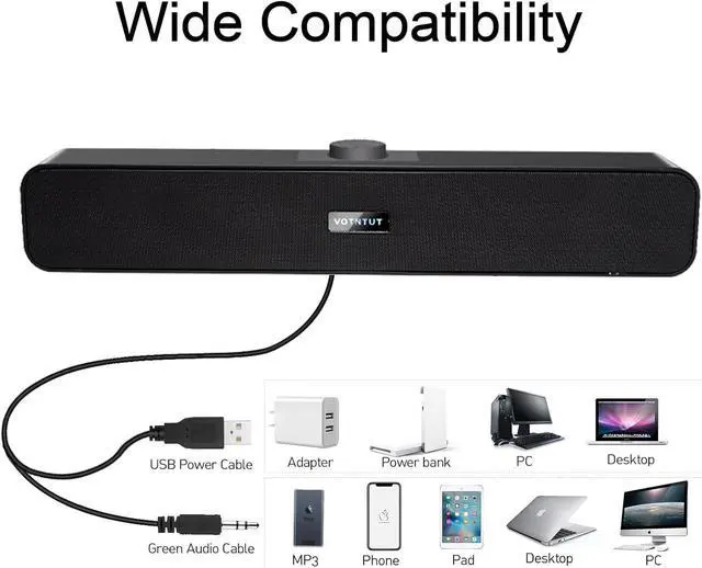 [Wider Compatibility] Our wired computer speakers come with 3.5 mm audio interface which are compatible with desktops, PCs, laptops, Mac, tablets, phones, projectors, monitors, PS4, MP3 and so on. For some laptops wih only type-c ports like Mac Air, Pro, we specially prepare the usb-c to usb adapter in the box. Then you can make the speaker powered by your computer, No need another power source
